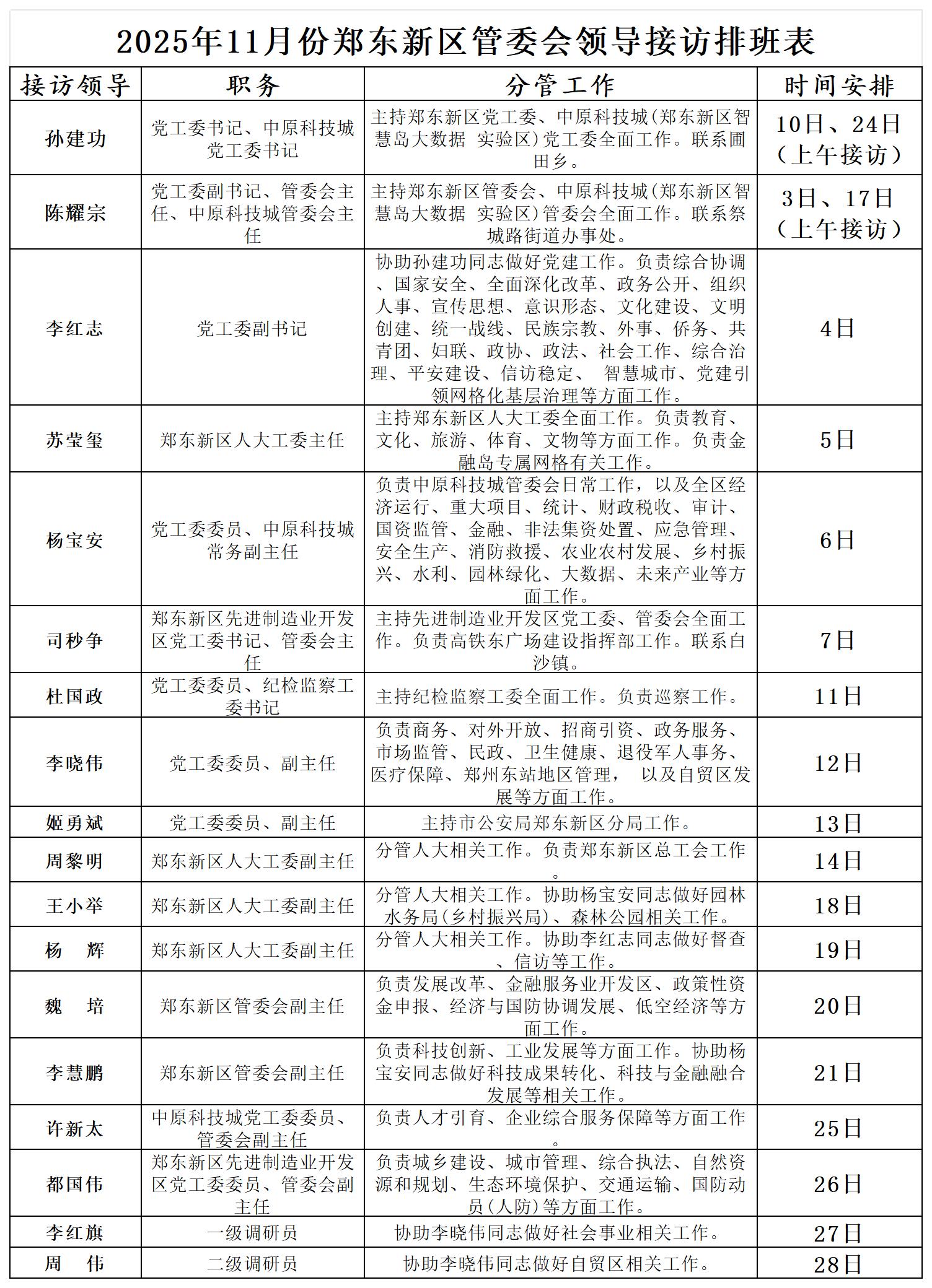 为进一步密切联系群众,畅通群众信访渠道,解决群众合理合法诉求,现将郑东新区党政领导接访时间公开发布。接访地点为郑东新区龙湖中环南路与龙翔四街向北50米路西社会治安综合治理中心。