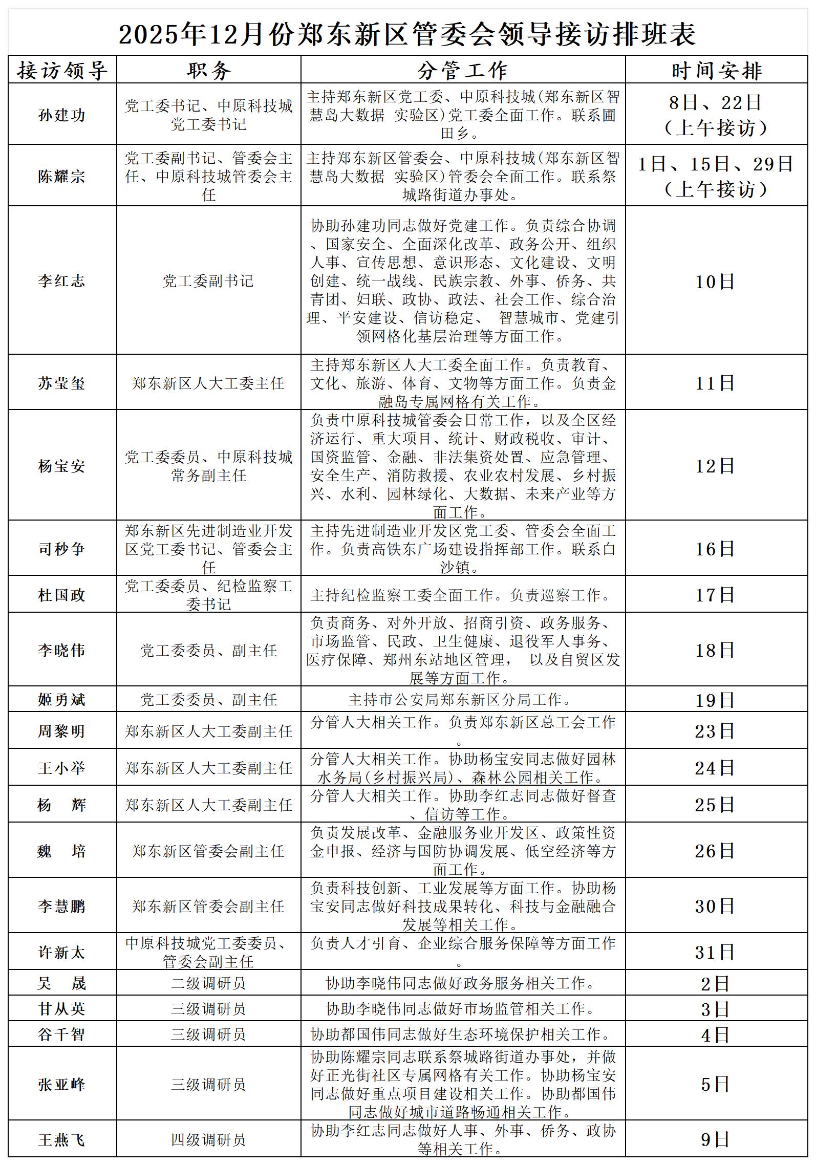 为进一步密切联系群众,畅通群众信访渠道,解决群众合理合法诉求,现将郑东新区党政领导接访时间公开发布。接访地点为郑东新区龙湖中环南路与龙翔四街向北50米路西社会治安综合治理中心。